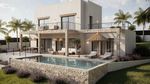 Villa under construction, estimated to be completed in March 2027. A short distance from all basic services. The villa will be distributed over three floors. The main floor features a spacious, bright living-dining room, thanks to its large windows leading to the ample porch and the pool. The kitchen will have an open concept towards the living-dining room, equipped with integrated appliances and a large breakfast bar, an adjacent pantry for daily convenience, a guest toilet, and a double bedroom with built-in wardrobes and an en-suite bathroom. On the upper floor, there are two spacious bedrooms, with built-in wardrobes, en-suite bathrooms, and access to large terraces, perfect for enjoying the fresh air and tranquility of the surroundings. In the basement, there will be two double bedrooms, a full bathroom, a large laundry room, and a spacious multipurpose room. Outside the property, a garden will surround the villa, and a wonderful pool will invite us to take a dip on those hot summer days, alongside a large porch, ideal for outdoor dining and parking for several cars. The entire villa will be equipped with suspended toilets, double-glazed windows with shutters, underfloor heating, and ducted air conditioning.